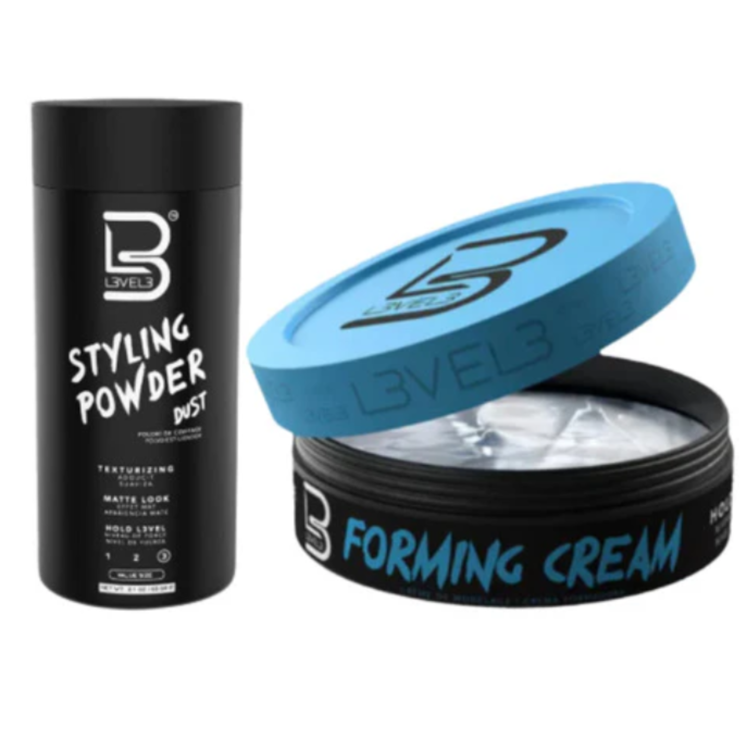 La combinación perfecta para estilizar tu cabello se encuentra en el Cera Forming Brillo Level3 y el Polvo Texturizador Negro Level3 de L3vel3. Este exclusivo dúo está diseñado para aquellos que buscan una fijación firme y duradera junto con una textura que transforma tu melena en una obra maestra. Con su cera, obtendrás un brillo atractivo mientras mantienes el control de cada mechón, y el polvo añade una dimensión mate que ofrece definición y volumen.