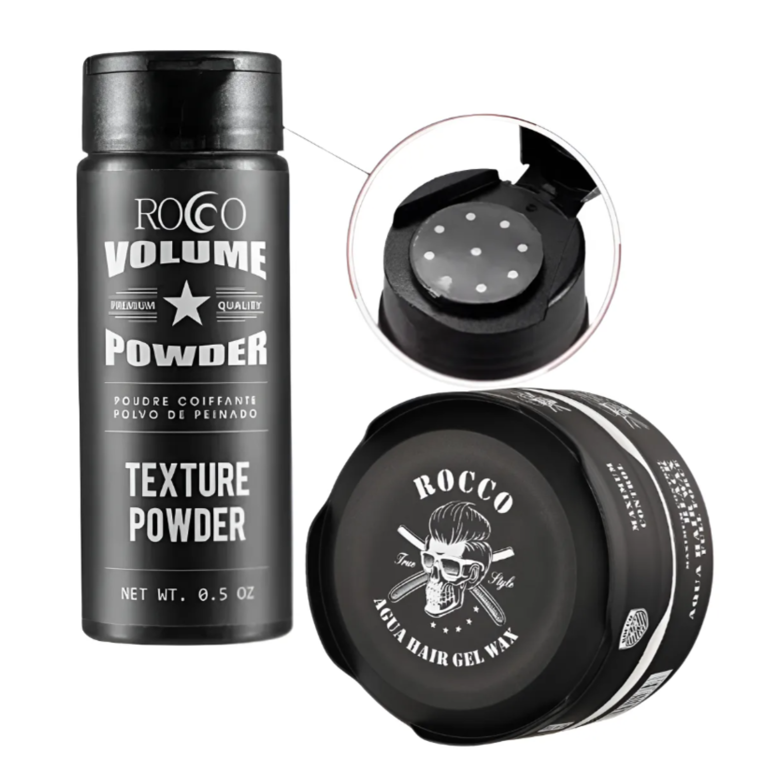Cera Rocco Aqua Hair Wax Black + Polvo Rocco Texturizante