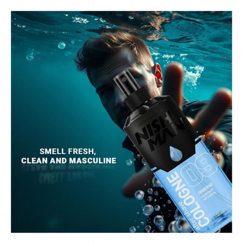 La Colonia Nish Man Afeitado After Shave N°09 Marine es la elección perfecta para quienes buscan una experiencia de afeitado revitalizante y refrescante. Con su aroma marino, esta colonia no solo calma la piel después del afeitado, sino que también proporciona una sensación de frescura duradera que te acompañará a lo largo del día.