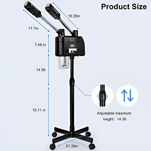 Diseñado con un elegante acabado en negro, el Vaporizador Facial Profesional es tanto funcional como estéticamente atractivo, haciéndolo un complemento perfecto para cualquier salón de belleza o espacio de bienestar. Su operación intuitiva garantiza un uso fácil y cómodo, permitiendo a los usuarios disfrutar de sesiones de spa personalizadas.